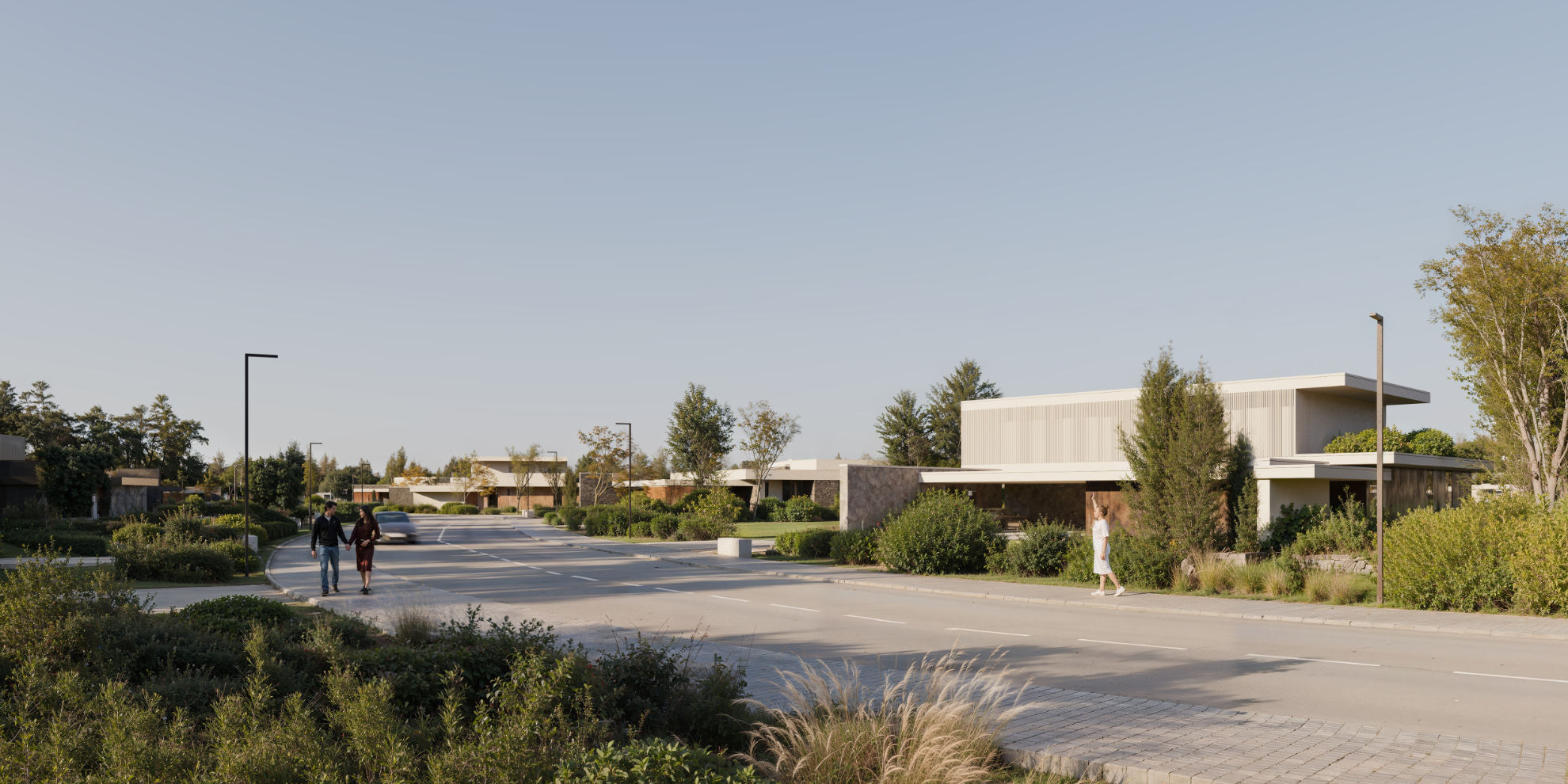 Выверенная, ритмичная застройка вдоль благоустроенного бульвара создаёт ощущение европейской резиденции. Площади домов варьируются от 330 до 570 м², участков — от 20 до 40 соток. Формат подойдёт тем, кто ценит архитектурную целостность, прогулочные маршруты и живую, но камерную среду.